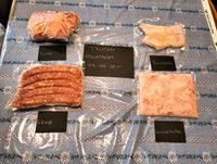 Hackfleisch, Geschnetzeltes, Ragout, Haxen, Schulterbraten, Saftplätzli, Bratwurst, Siedfleisch, Filet, Entercote, Huft, Hohrückensteak und a la Minute Plätzli.